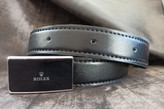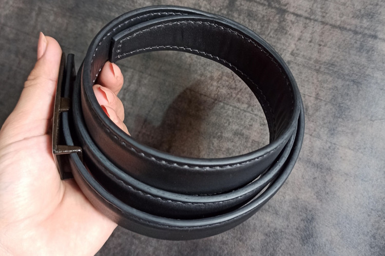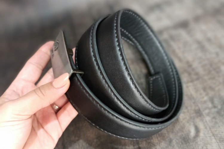 کمربند مردانه چرم طبیعی گاوی دولایه دستدوز مدل سگک پلاکی