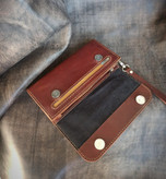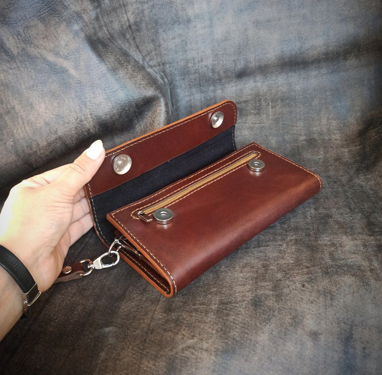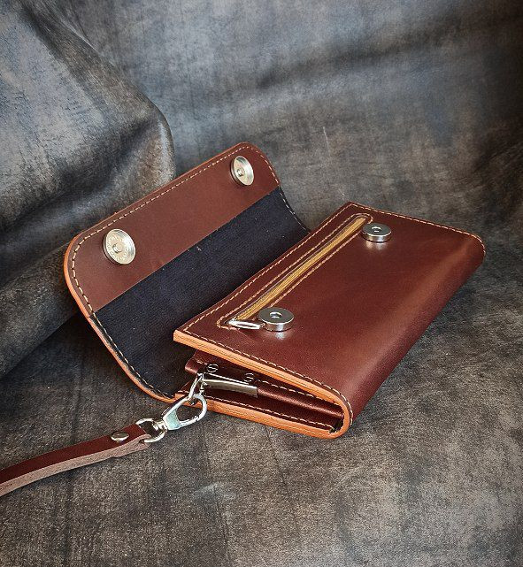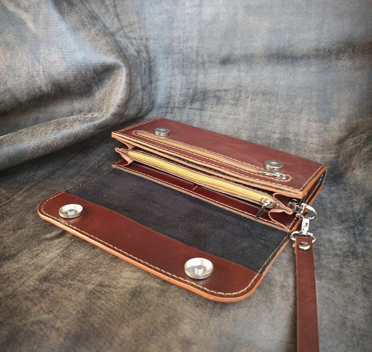 کیف پول دستی زنانه چرم طبیعی دستدوز مدل مگنتی مدل ملورین برند چرم مندی
