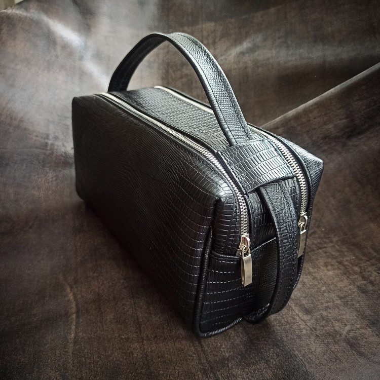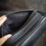 چرم طبیعی گاوی یراق رنگ ثابت زیپ فلزی آستری مقاوم داخلش دوتا جیب مجزا داره روی بدنه یک جیب مجزاداره۱