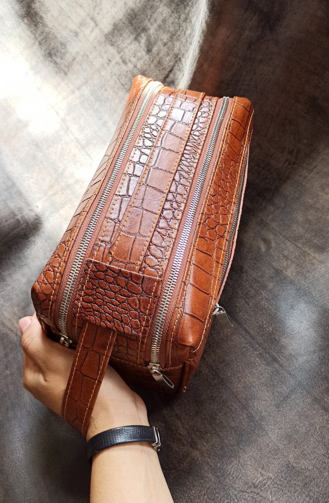کیف دستی شوزبگ مردانه چرم گاوی پریما عسلی دوحالته سایز بزرگ چرم مندی