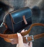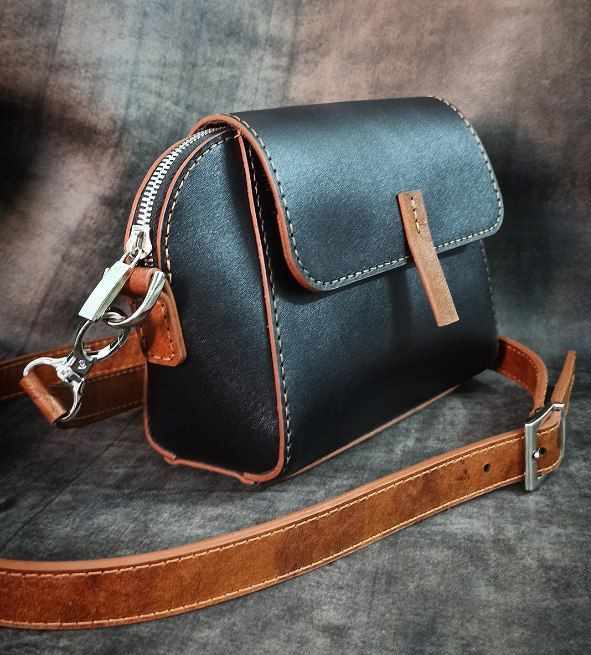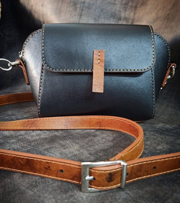 کیف دوشی زنانه چرم طبیعی مدل مانیا بابنددوشی دولا چرمی