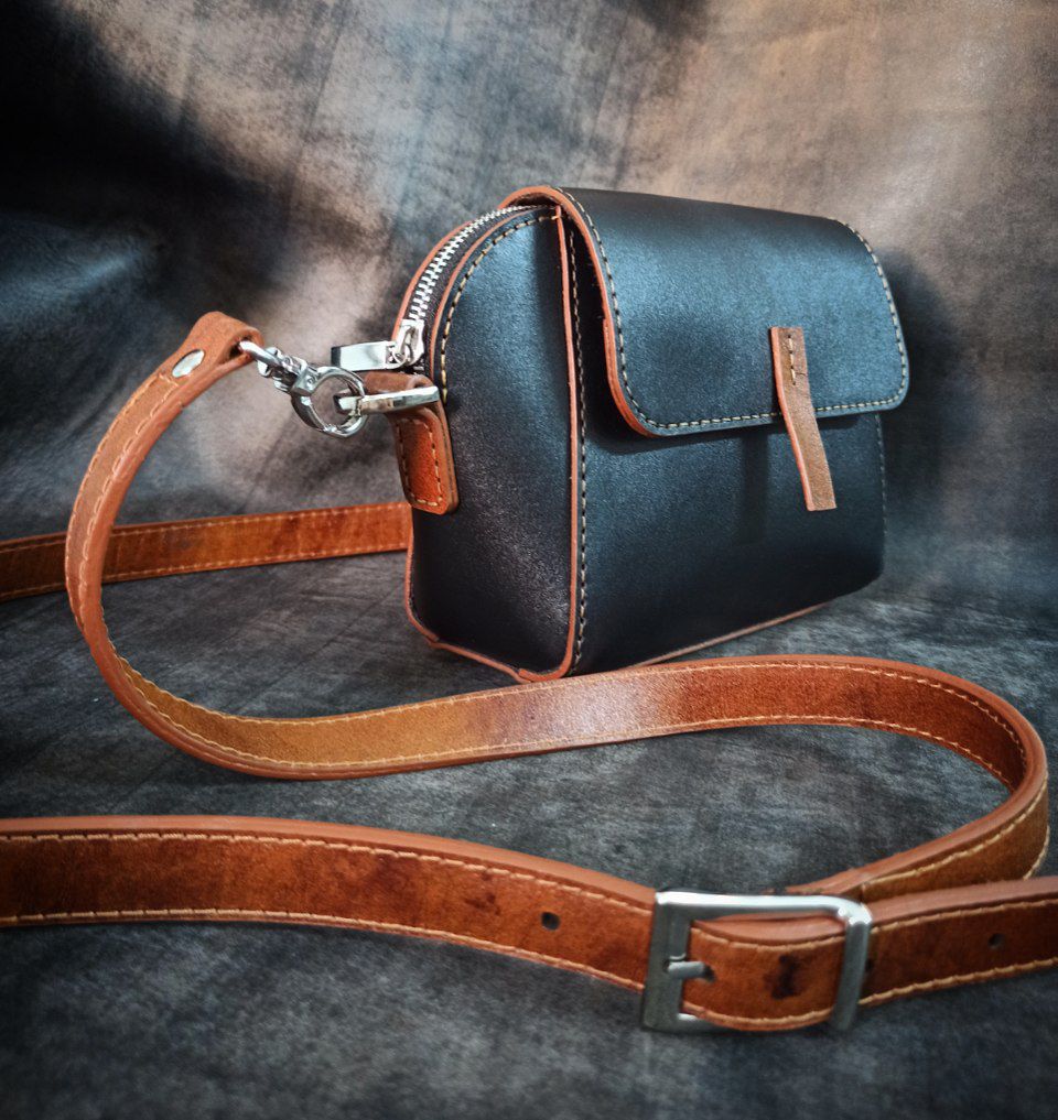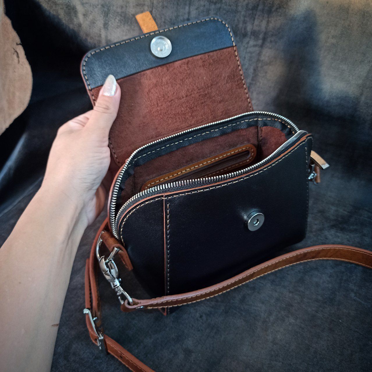 کیف دوشی زنانه چرم طبیعی مدل مانیا بابنددوشی دولا چرمی