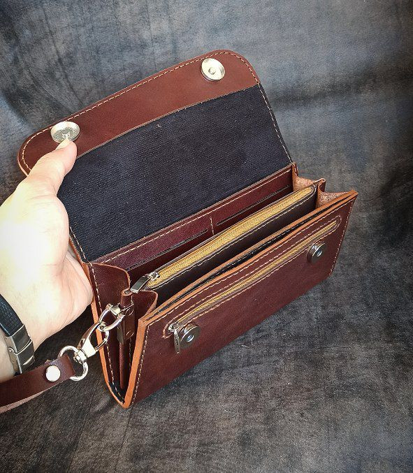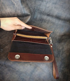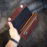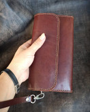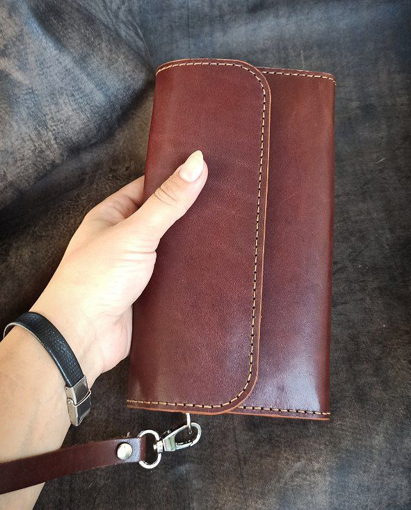 کیف پول دستی زنانه چرم طبیعی دستدوز مدل مگنتی مدل ملورین برند چرم مندی