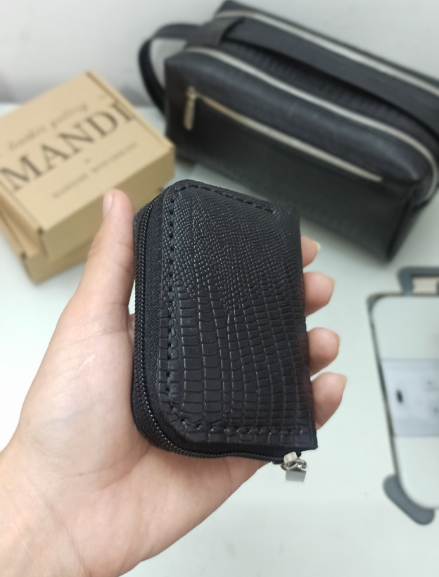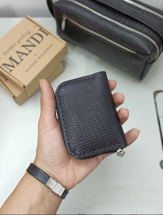 جاکارتی آکاردئونی چرم طبیعی گاوی مشکی لیزارد