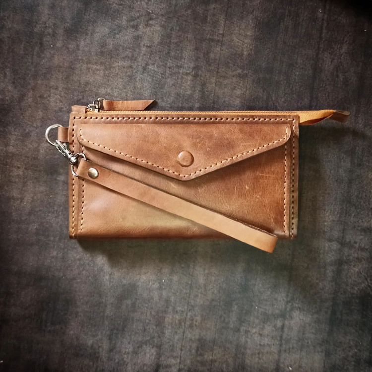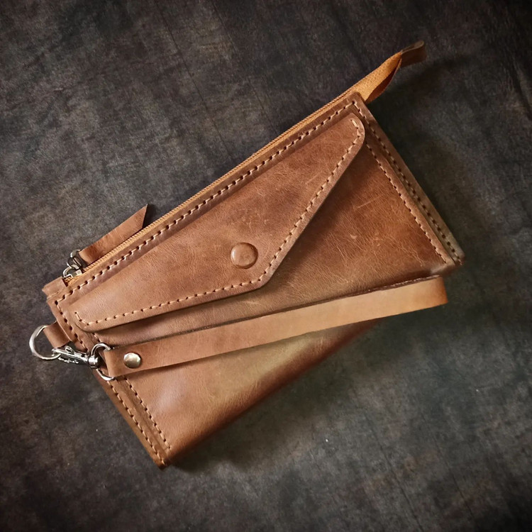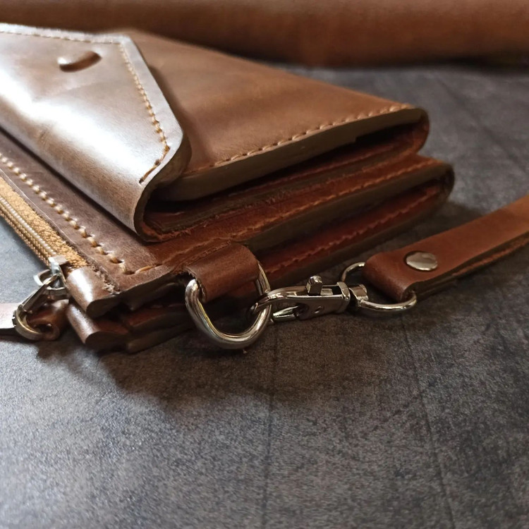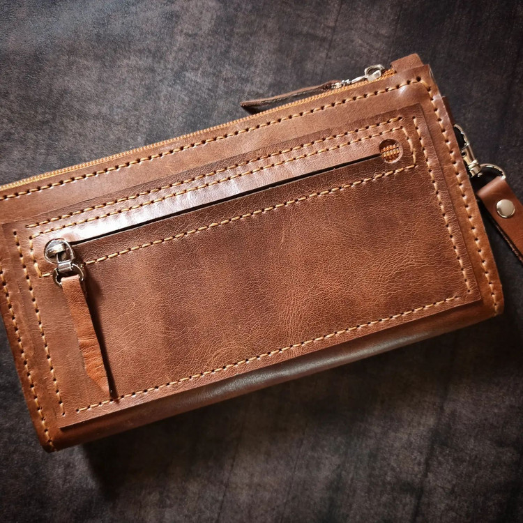 چرم طبیعی گاوی ابعاد ۲۲در ۱۲ دارای کیسه ی مجزا برای قرار گرفتن گوشی همراه و ۱۰ عدد کارت بانکی جیب مجزا برای اسکناس فلش و ......