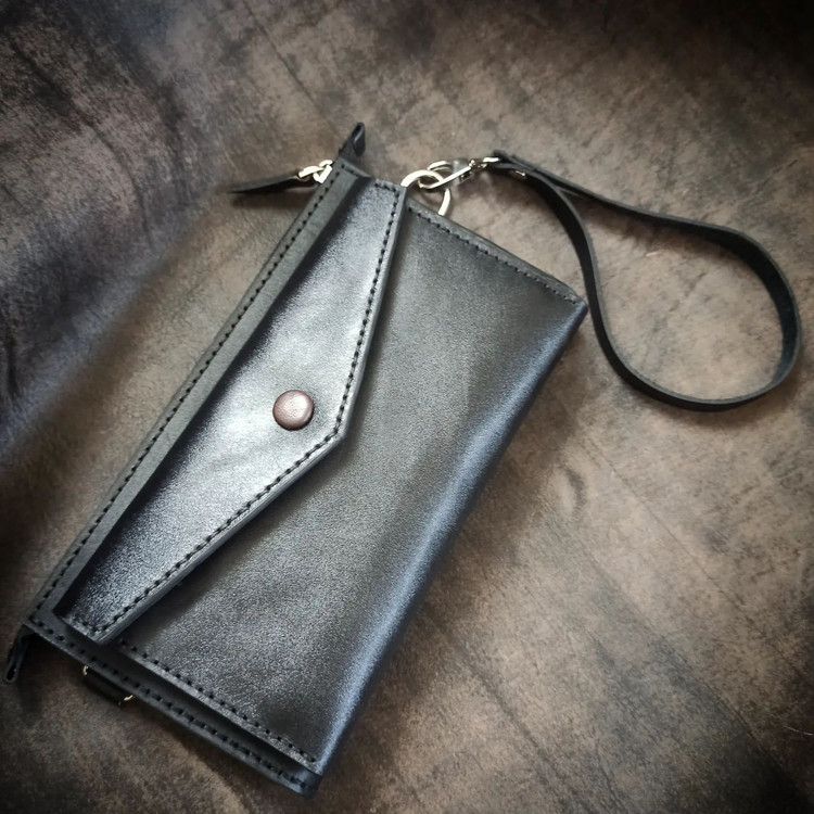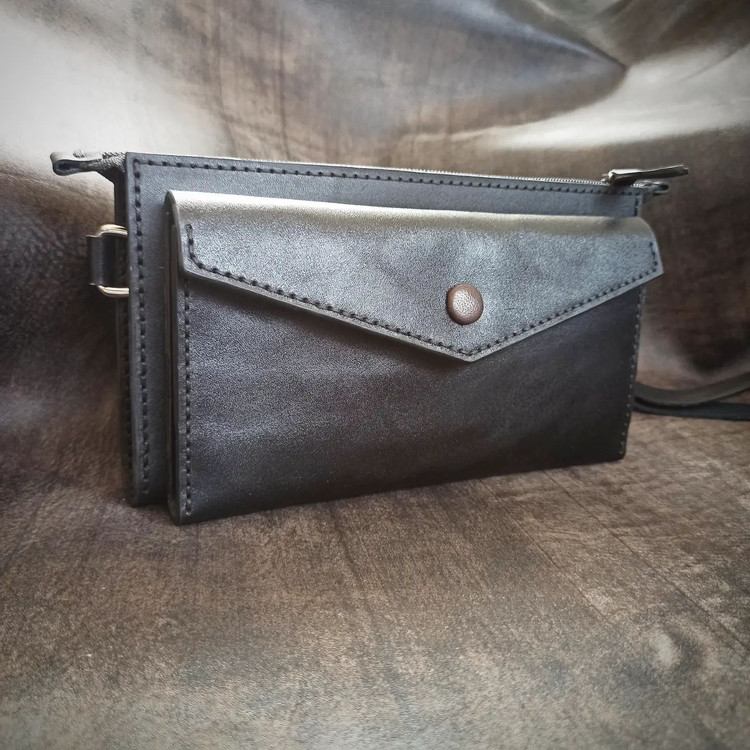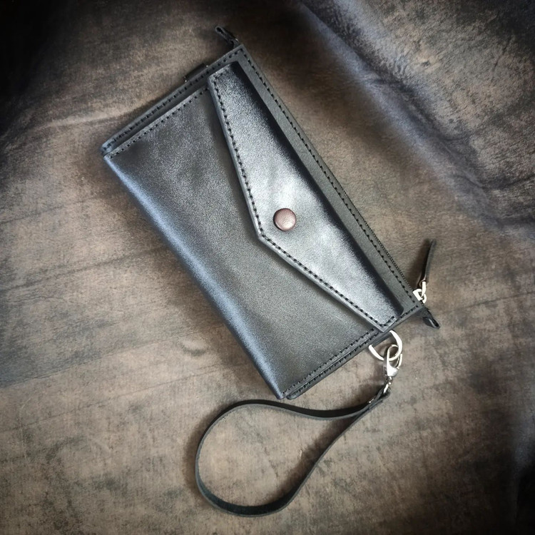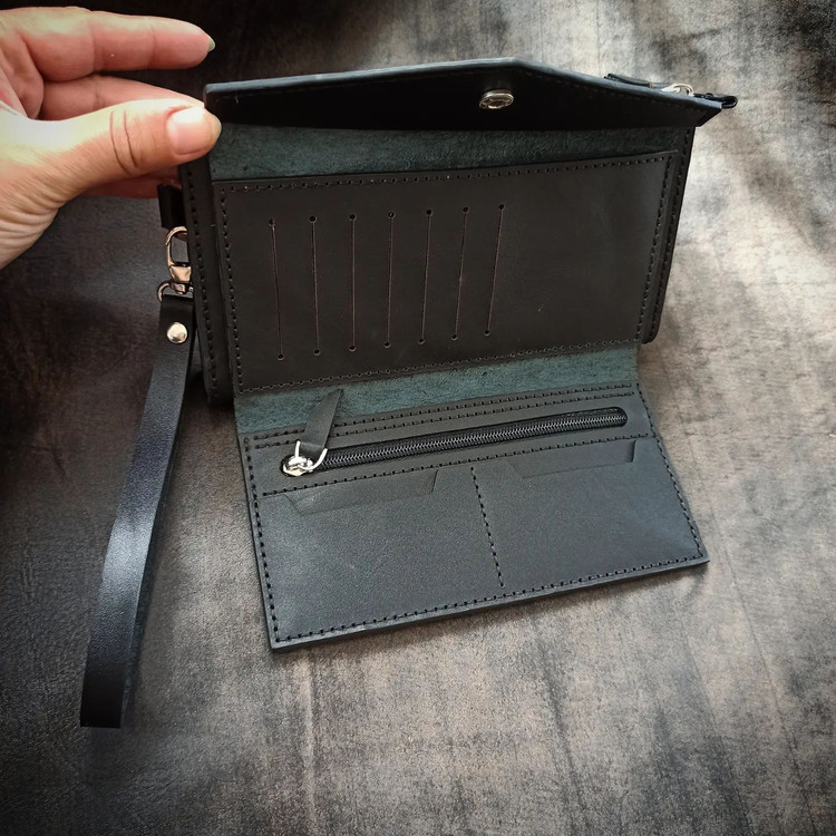 کیف مدارک دستی دوخته شده از چرم درجه یک گاوی ویراق رنگ ثابت دارای محفظه ی جدا برای گوشی همراه دستدوز ابعاد ۱۲در۲۱