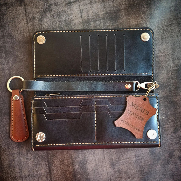 کیف پول و جاموبایلی چرم طبیعی جای گوشی موبایل داره با کلی جاکارتی و جای اسکناس یه جیب زیپدار هم داخلش بندینک دور مچ هم داره کیف پول دستی دست دوز دوخته شده با چرم گاوی درجه یک یراق خارجی رنگ ثابت